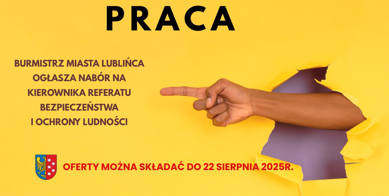 Dokumenty kandydaci powinni złożyć w zamkniętej kopercie w Centrum Obsługi Mieszkańców Urzędu Miejskiego w Lublińcu przy ul. Paderewskiego 7a lub przesłać za pocztą na adres: Urząd Miejski, ul. Paderewskiego 5, 42-700 Lubliniec – do 22 sierpnia. Koperta winna być opatrzona dopiskiem „Nabór na stanowisko urzędnicze – kierownik Referatu Bezpieczeństwa i Ochrony Ludności”.