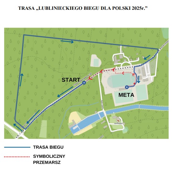 Ok. godz. 11.45 uczestnicy ustawią się na bieżni, przed trybuną główną, tworząc z koszulek biało-czerwoną flagę. O godz. 12 zaplanowano odśpiewanie hymnu państwowego. Potem wszyscy przejdą na linię startu, ul. 74 GPP i ruszą na trasę.
