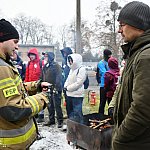 Na zewnątrz znajdowały się kolejne punkty. Można było poznać m.in. tajniki orientacji w terenie, sposoby gaszenia pożaru gaśnicą, zasady przygotowania plecaka ewakuacyjnego, sygnały alarmowe. Prowadzący szkolenie mówił też, jak rozpalić ogień w warunkach survivalowych. Zapałka może zamoknąć, zapalniczka nie zadziałać, więc najlepiej mieć ze sobą krzesiwo.