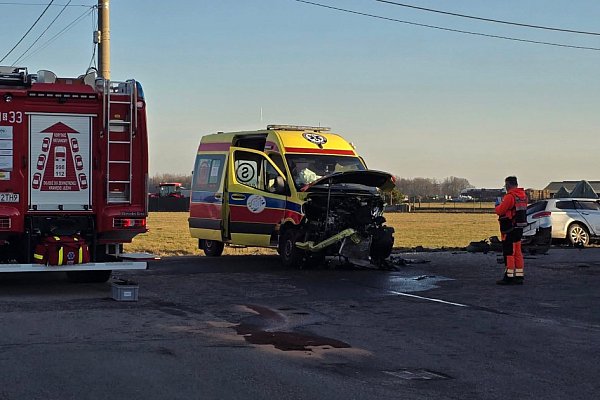 28.02.2026 Powiat lubliniecki. Zderzenie karetki z osobówką