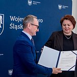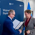 Symboliczne listy gratulacyjne beneficjentom wręczył wicemarszałek Województwa Śląskiego Grzegorz Boski podczas spotkania w Sali Marmurowej Urzędu Marszałkowskiego.