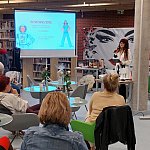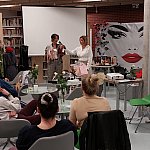 Jolanta Śliwa z Miejskiej Biblioteki Publicznej w Gliwicach przeniosła uczestniczki spotkania do lat 20. i 30. XX wieku, pokazując, jak styl i moda odzwierciedlają społeczne zmiany i emancypację kobiet.