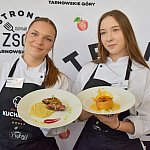 I miejsce: Julia Kępska i Lena Chmiel (ZSGiPS - CKZiU w Katowicach) – za polędwiczki w sosie cydrowym z chutneyem jabłkowym oraz torcik z karmelizowanych jabłek z kremem angielskim.