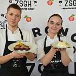 II miejsce: Oliwia Szewczyk i Rostyslav Kushnir (ZS 2 w Jastrzębiu-Zdroju) – za gołąbka z puree z kapusty, kluskami ziemniaczano-serowymi i żelem z jabłka.