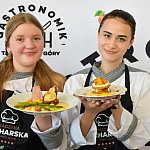 III miejsce: Emilia Gabor i Maja Hanszla (ZSGH w Tarnowskich Górach) - za marynowaną pierś z kaczki z puree ziemniaczano-jabłkowym oraz jabłko zapiekane z kremem brulée i sosem waniliowym.