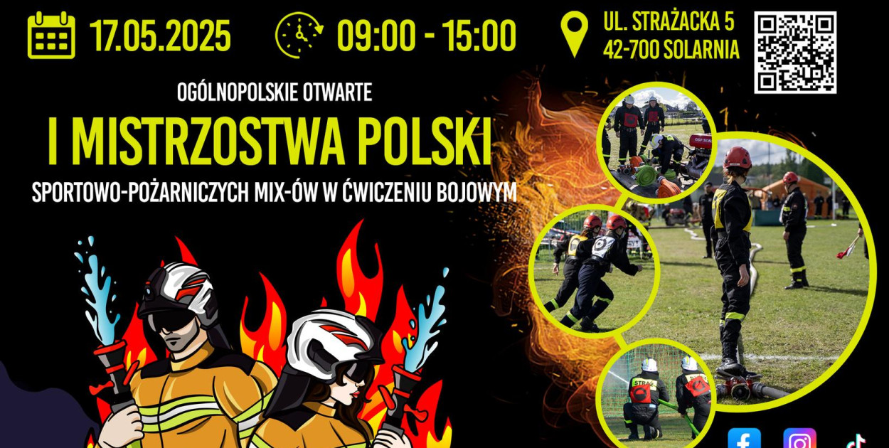OSP Solarnia zaprasza na Ogólnopolskie Otwarte I Mistrzostwa Polski Sportowo-Pożarniczych Miksów w ćwiczeniu bojowym. Będą w sobotę, 17 maja na boisku przy remizie, przy ul. Strażackiej 5.
