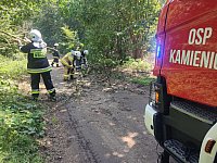 Wczoraj po godz. 22 wybuchł pożar budynku gospodarczego w Rusinowicach. Jak informuje asp. szt. Rafał Romanek z komendy PSP w Lublińcu, paliła się wiata przylegająca do budynku gospodarczego. Dachem ogień przeniósł się z wiaty na piętro tego budynku. Pożar gasiły 4 strażackie zastępy z KP PSP w Lublińcu i 5 OSP – Koszęcin, Sadów i Rusinowice. Na miejscu byli też druhowie z OSP Kochcice, którzy dysponują sprężarką - naładowali 16 butli powietrznych zastępów prowadzących działania. Akcja trwała do godz. 2 w nocy. Na razie nie wiadomo, jakie były przyczyny pożaru. Czytaj też: Sąd nakazał zapłacić staroście Joachimowi Smyle 5 tys. zł grzywny